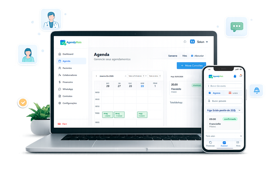 O AgendyMais é o sistema completo de agendamentos para clínicas, consultórios e profissionais que querem atender mais e perder menos tempo.