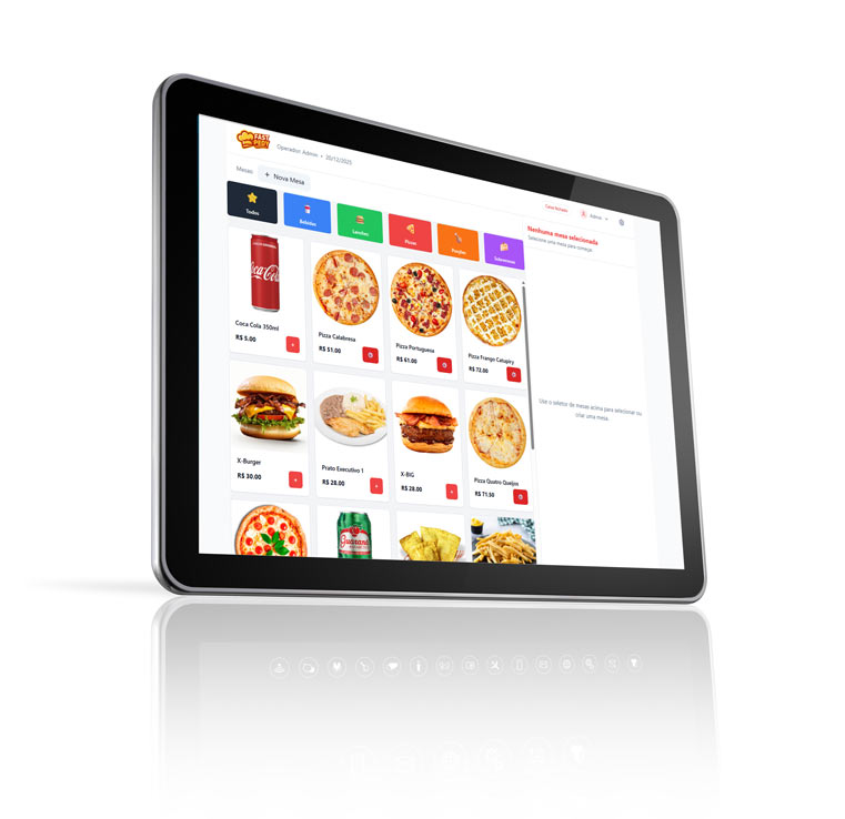 O sistema oferece um Ponto de Venda (PDV) integrado, unificando o atendimento de balcão e delivery em um só lugar, com emissão de comandas, impressão em cozinha, controle de mesas e relatórios detalhados.